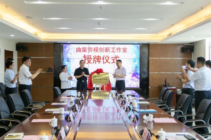7月8日在城市學(xué)院,李香軍與學(xué)院黨委書(shū)記宋寧共同為“勞模(高技能人才)曲笛創(chuàng)新工作室”揭牌。曲笛作為城市學(xué)院的優(yōu)秀年輕教師代表,在世界技能大賽上屢創(chuàng)佳績(jī),曾受到國(guó)務(wù)院總理李克強(qiáng),山東省委副書(shū)記、省長(zhǎng)龔正分別接見(jiàn)。