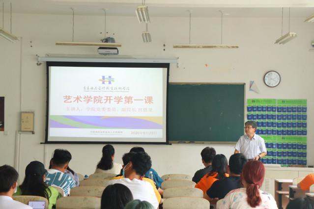 宮恩龍以《風(fēng)雨無阻向前進》為題,為返校學(xué)生講授“開學(xué)第一課”,他向同學(xué)們介紹了學(xué)院守好“責(zé)任田”,護好“一院人”,全力打贏疫情防控阻擊戰(zhàn)的基本情況,引導(dǎo)同學(xué)們要做堅定的愛國者、有良心的感恩者、健康的守護者和規(guī)則的遵守者。藝術(shù)學(xué)院院長朱廣麗就新學(xué)期藝術(shù)學(xué)院的課程設(shè)置、專業(yè)發(fā)展向同學(xué)們作了介紹。