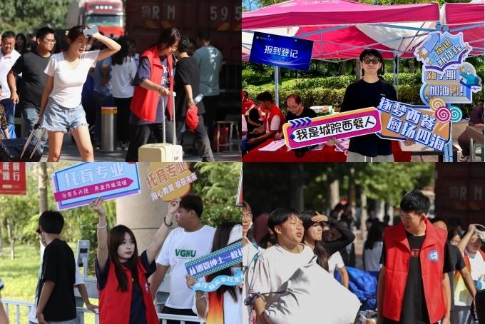 百余名志愿者遍布接站點和校園,通過信息咨詢、道路指引、物資領取、行李搬運,為新生入學保駕護航。學校還在報到現場設置了臨時飲水點和休息區,為新生和家長送去清涼。同時,校園內布置了多處打卡點,其中“熱烈歡迎新同學”巨型展板由全體新生名字組成,極具創意的設計引得學生和家長紛紛駐足尋找自己的名字并拍照留念。
