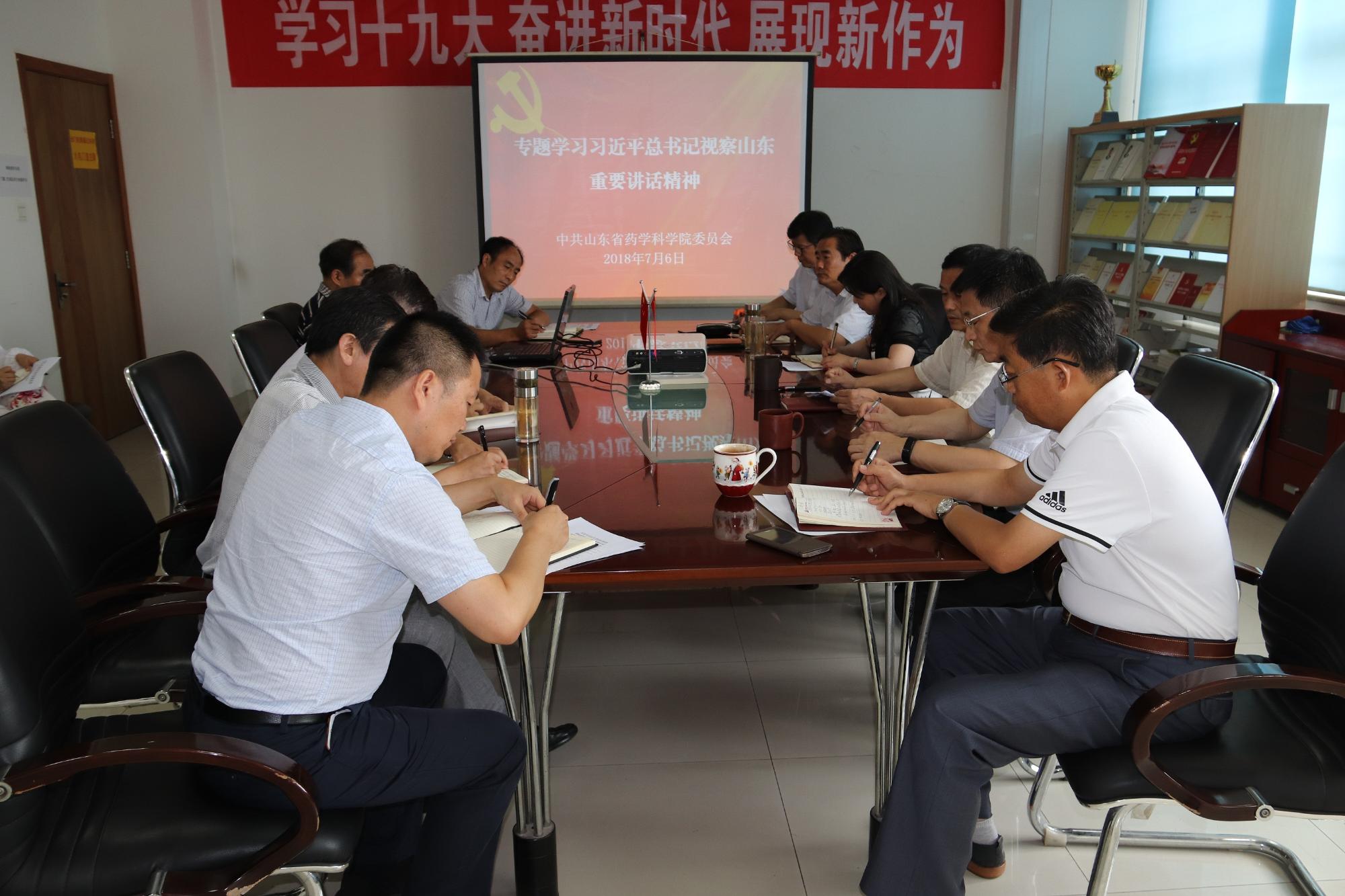 7月6日,省藥科院黨委召開中心組學習(擴大)會議,專題學習習近平總書記視察山東重要講話精神。院黨委成員、各基層黨支部書記、黨群工作人員參加了會議。會議由院黨委副書記胡永和同志主持。