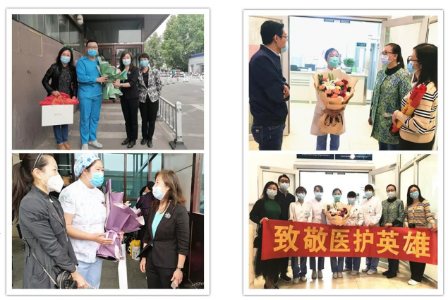 5月12日是護士節,銀座幼教黨總支開展“愛滿銀座幼教 致敬醫護英雄”主題黨日活動,組織黨員來到山東大學第二醫院、山東省胸科醫院、山東省立醫院、山東省千佛山醫院、濟南市中心醫院、山東大學齊魯醫院,向身為在園幼兒家長的一線戰疫英雄們致敬,并為他們送上最誠摯的祝福。