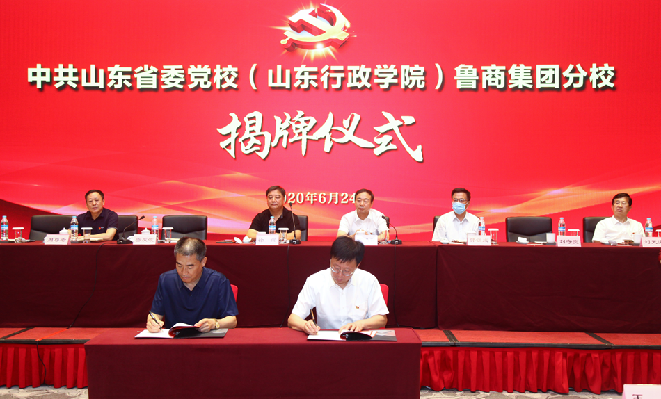 現(xiàn)場,徐聞與高洪雷共同為省委黨校(山東行政學(xué)院)魯商集團(tuán)分校揭牌。魯慶波與李林分別代表雙方簽訂戰(zhàn)略合作協(xié)議。