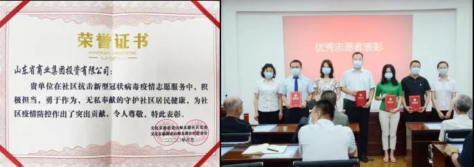 在疫情防控工作優秀志愿者表彰大會上,投資公司獲評“抗疫優秀志愿單位”。新冠肺炎疫情發生以來,投資公司總部黨支部、永興集團黨支部和永興物業黨支部聯合成立黨員突擊隊,為社區采買防疫物資,主動認領社區卡口執勤任務,為廣大員工健康護航,為社區疫情防控解壓,用實際行動詮釋著企業的責任擔當。