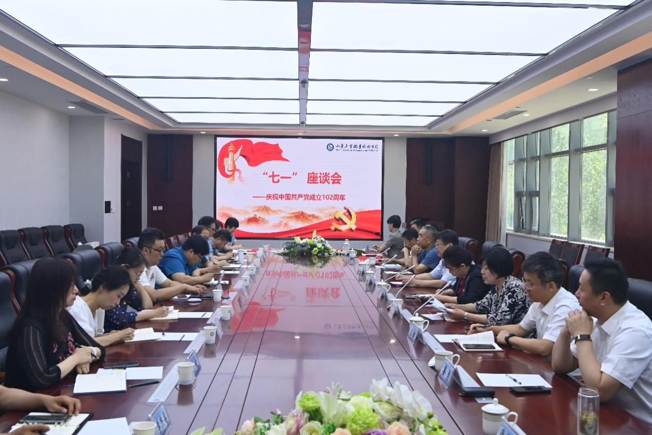 6月30日,山東商院舉行“七一”座談會,慶祝中國共產(chǎn)黨成立102周年。學(xué)院黨委書記張志東出席會議,黨委副書記、院長王鑫主持。