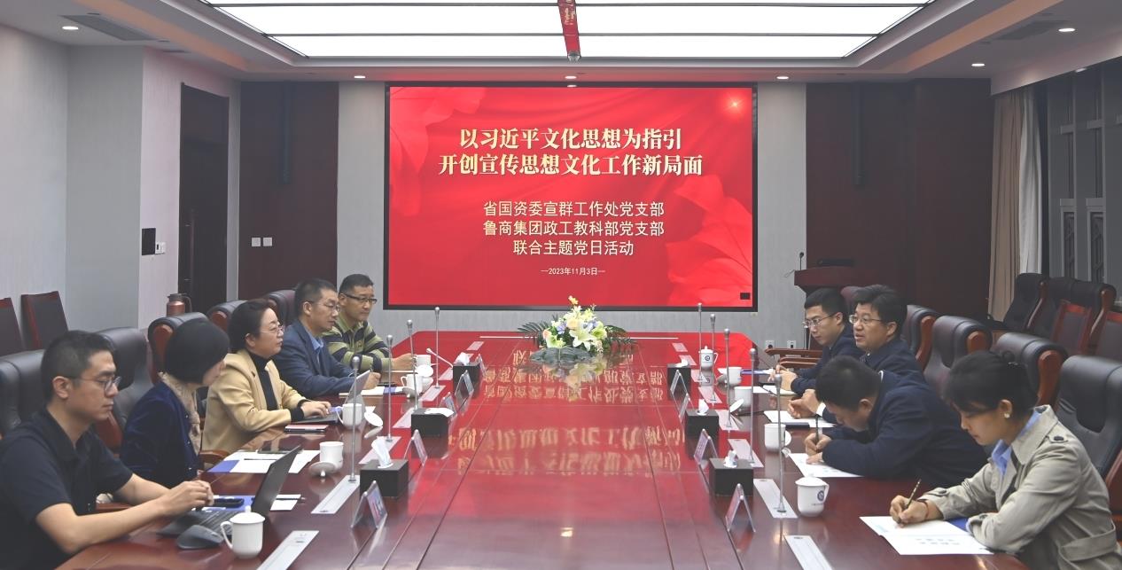 為深入學習貫徹習近平文化思想,推動宣傳思想文化工作展現新形象新作為,推進基層黨組織建設,進一步增強黨支部的凝聚力和戰斗力,11月3日,省國資委宣群工作處黨支部、魯商集團政工教科部黨支部聯合開展“以習近平文化思想為指引 開創宣傳思想文化工作新局面”主題黨日活動。