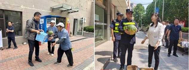 6月中旬,省內迎來連續高溫,魯商服務黨委領導班子分別前往項目,慰問一線職工,為他們送去了礦泉水、西瓜等解暑物資,感謝職工奮戰在項目一線,叮囑他們外出工作時要做好防暑降溫措施,確保身體健康和勞動安全。同時,督促各基層項目要全面落實好安全生產主體責任和夏季安全生產措施。
