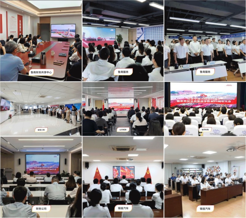 9月3日上午,魯商集團總部及各產業全體黨員干部職工集體收聽收看紀念中國人民抗日戰爭暨世界反法西斯戰爭勝利80周年大會。