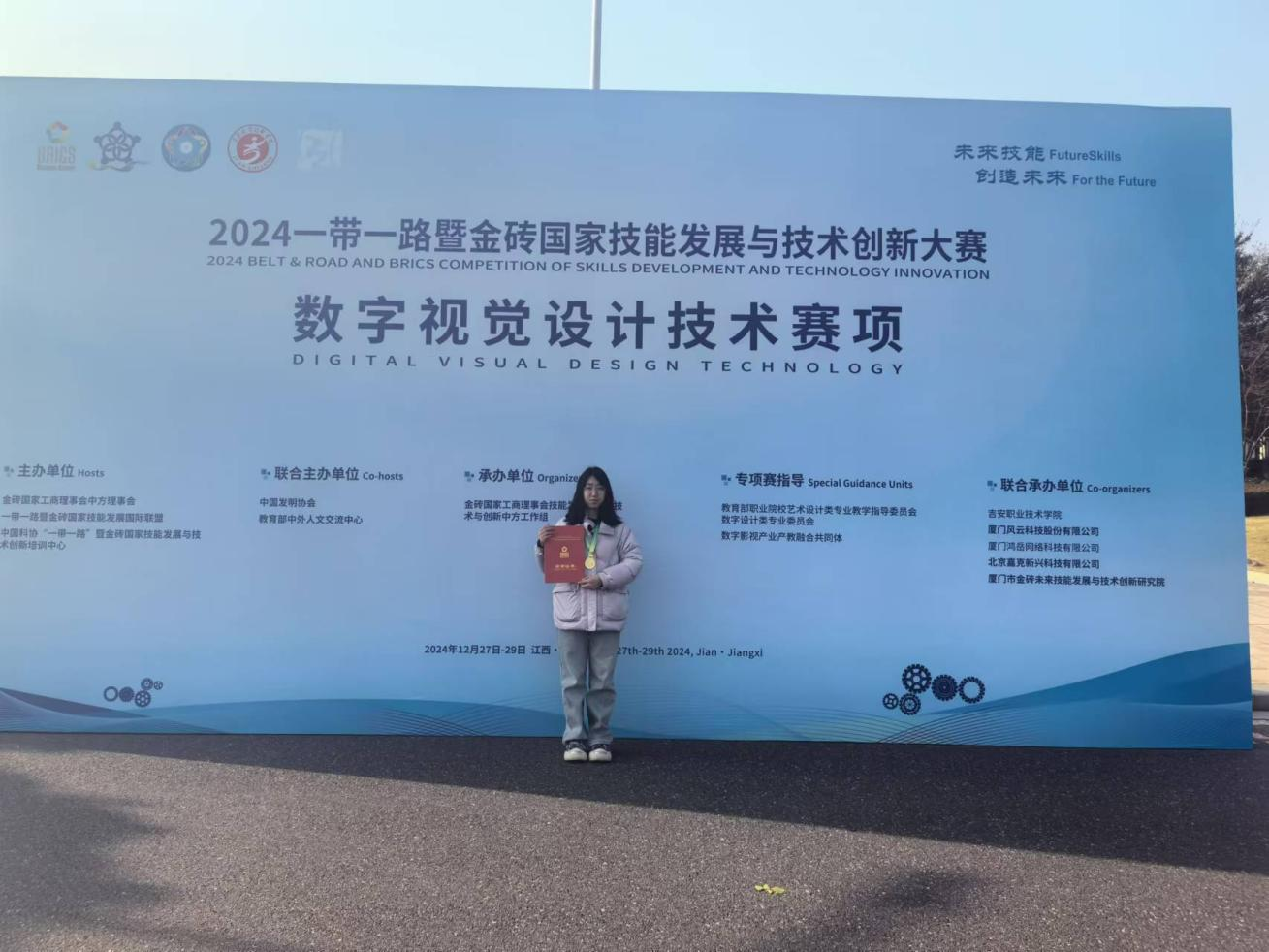 近日,2024年一帶一路暨金磚國家技能發(fā)展與技術(shù)創(chuàng)新大賽數(shù)字視覺設(shè)計技術(shù)賽項(高職組)國內(nèi)總決賽順利舉行。山東城市服務(wù)職院學(xué)生郭冰琛憑借出色的技能和創(chuàng)新能力,斬獲數(shù)字視覺設(shè)計技術(shù)賽項國賽一等獎。