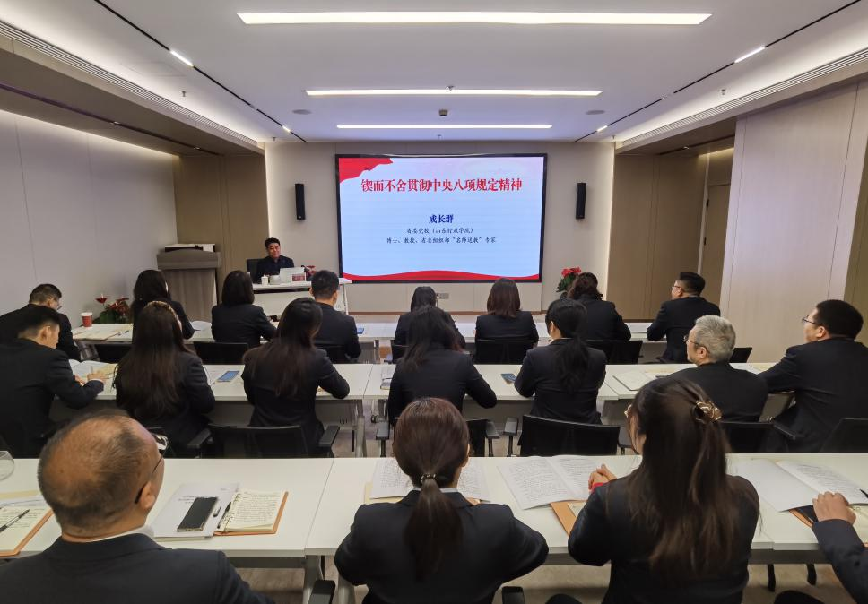 讀書(shū)班期間,全員通過(guò)集中學(xué)習(xí)、個(gè)人自學(xué)和分組交流研討等方式,認(rèn)真學(xué)習(xí)了習(xí)近平總書(shū)記關(guān)于加強(qiáng)黨的作風(fēng)建設(shè)的重要論述和中央八項(xiàng)規(guī)定及其實(shí)施細(xì)則精神,中共山東省委黨校(山東行政學(xué)院)成長(zhǎng)群教授作《鍥而不舍貫徹中央八項(xiàng)規(guī)定精神》專題授課。